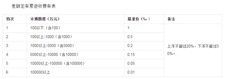 第四條 資產(chǎn)評估收費(fèi)標(biāo)準(zhǔn)分為五檔,各檔差額計費(fèi)率如下表:行計件收費(fèi)的法定資產(chǎn)評估服務(wù),可以按被評估資產(chǎn)賬面原值(無帳面原值可按評估價值或重置價值,下同)為計費(fèi)額度,采取差額定率累進(jìn)計算辦法收取評估費(fèi)用,即按被評估資產(chǎn)的賬面原值的大小劃分收費(fèi)檔次,分檔計算收費(fèi)額、各檔相加為評估收費(fèi)總額。差額定率累進(jìn)收費(fèi)率表